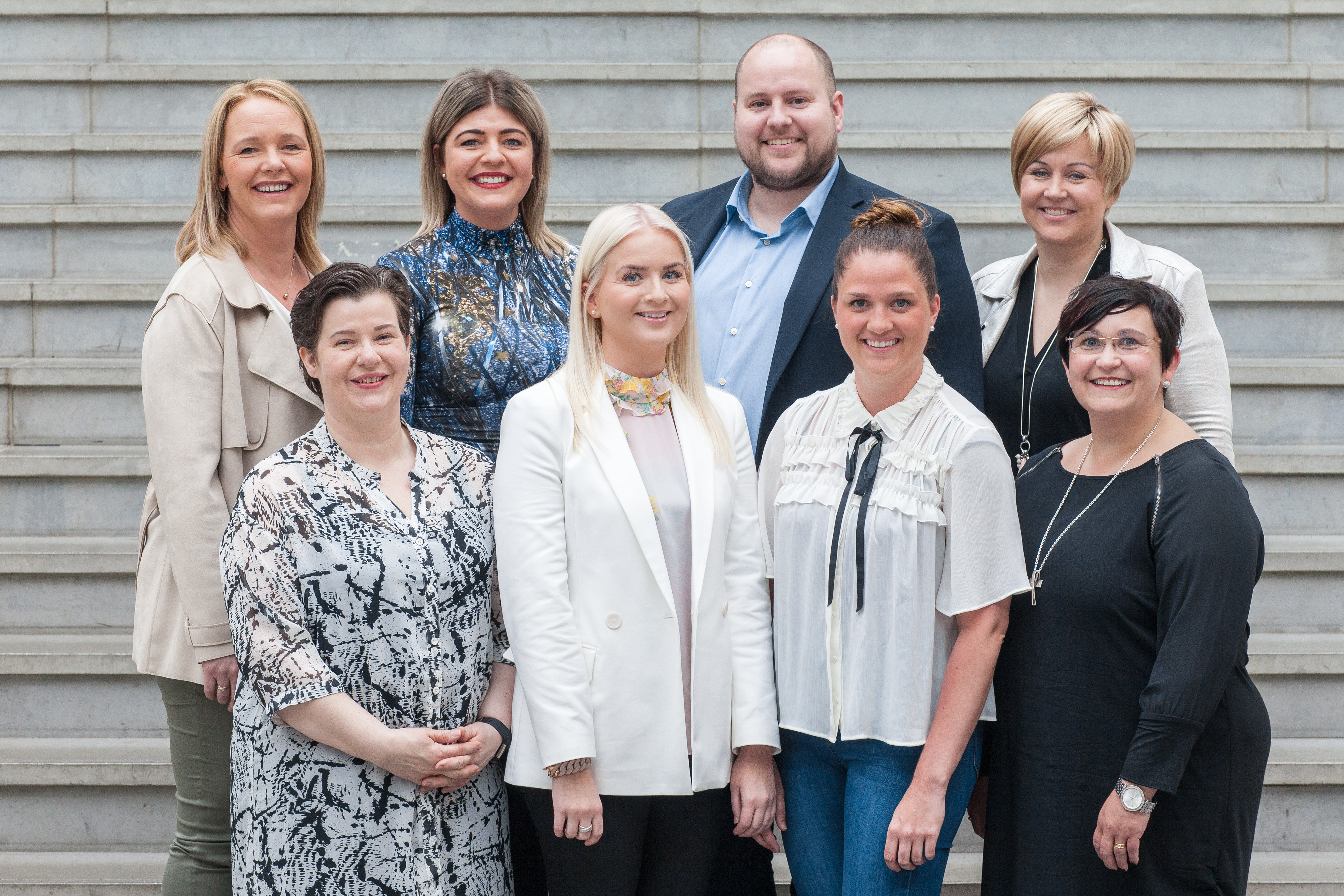 Útskriftarhópur Arion banka. Neðri röð: Erla Stefánsdóttir, Þóra Björk Gísladóttir, Tara Elíasdóttir og Helga Jónína Guðmundsdóttir. Efri röð: Jórunn Ólafsdóttir, Elín Björg Arinbjarnardóttir, Hjörtur Torfi Halldórsson og Guðrún Sigurðardóttir.[/caption]