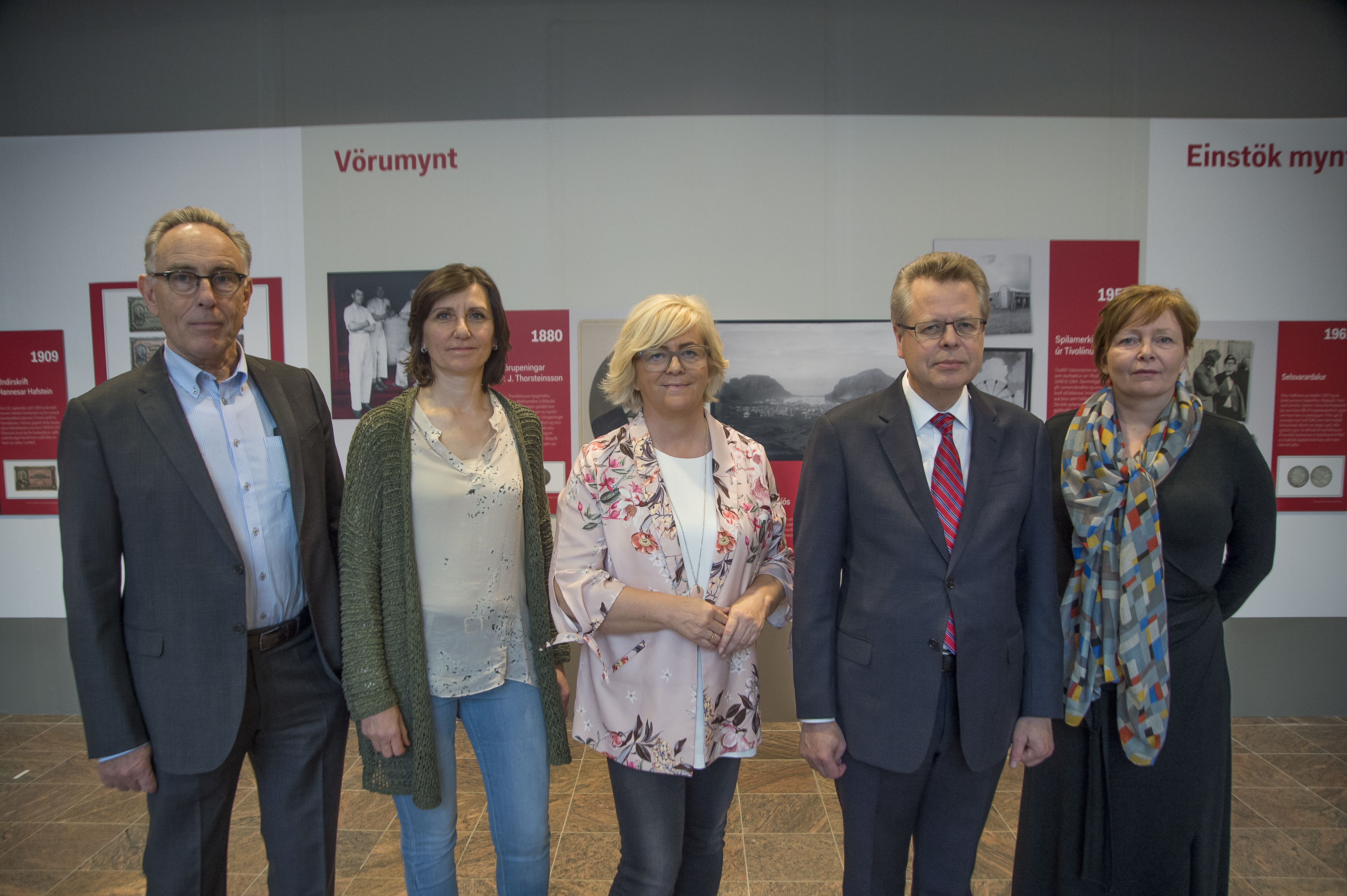 Mynd: Friðrik Sophusson, stjórnarformaður Íslandsbanka, Sigríður Olgeirsdóttir, framkvæmdastjóri Rekstrar- og upplýsingatæknisviðs Íslandsbanka, Birna Einarsdóttir, bankastjóri Íslandsbanka, Már Guðmundsson, seðlabankastjóri og Margrét Hallgrímsdóttir, Þjóðminjavörður.