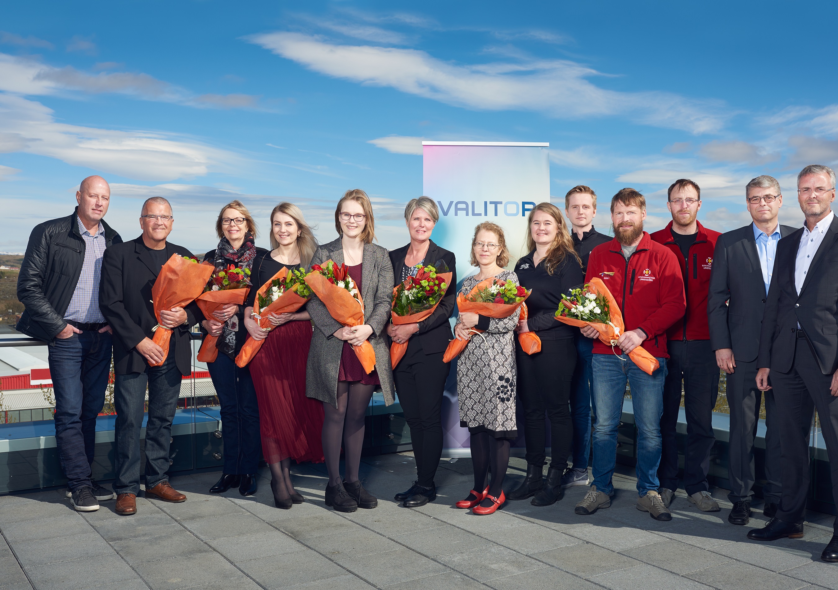 f.v. Jóhann Sigurðsson og Jóhannes G. Bjarnason f.h. Hollvinasamtaka Sjúkrahússins á Akureyri, Þóra Sigurðardóttir, f.h. Hallfríðar Þóru Tryggvadóttur, Ásta Rún Valgerðardóttir, Steinunn B. Sveinbjörnsdóttir f.h. Bjargráðs, María Árnadóttir f.h. Ástu K. Pjetursdóttur, Guðrún Óskarsdóttir f.h. Sölva Kolbeinssonar, Emma R. Antonsdóttir og Óttar Gíslason f.h. Spark -Team, Gísli J. Johnsen og Kristján Arason, f.h. Björgunarsveitar Hafnarfjarðar, Kristján Þ. Harðarson, framkvæmdastjóri Valitor Ísland og Viðar Þorkelsson, forstjóri Valitor.[/caption]